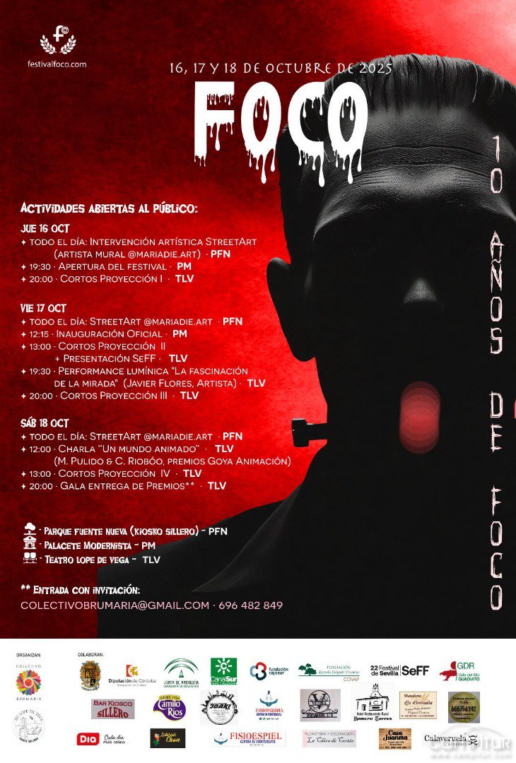 Fuente Obejuna se prepara para vivir una nueva edición de FOCO – Encuentro Educativo de Creación Audiovisual “Fuente Obejuna de Cortos”, que este año alcanza su décimo aniversario consolidado como uno de los referentes nacionales del cine educativo y la creatividad audiovisual. El evento se celebrará los días 16, 17 y 18 de octubre y llenará las calles de la localidad cordobesa de arte, cultura y juventud.